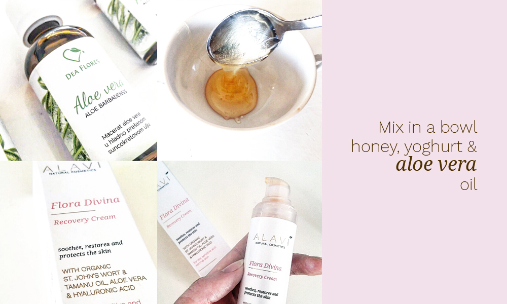 Mix well all the ingredients, then apply to the face and neck. Lightly massage the ingredients into the skin and leave it on for about ten minutes. Rinse out the mask with warm water and towel dry your face. In the end apply the Alavi Recovery Cream containing Aloe vera:) Voila! Your skin is perfect:)