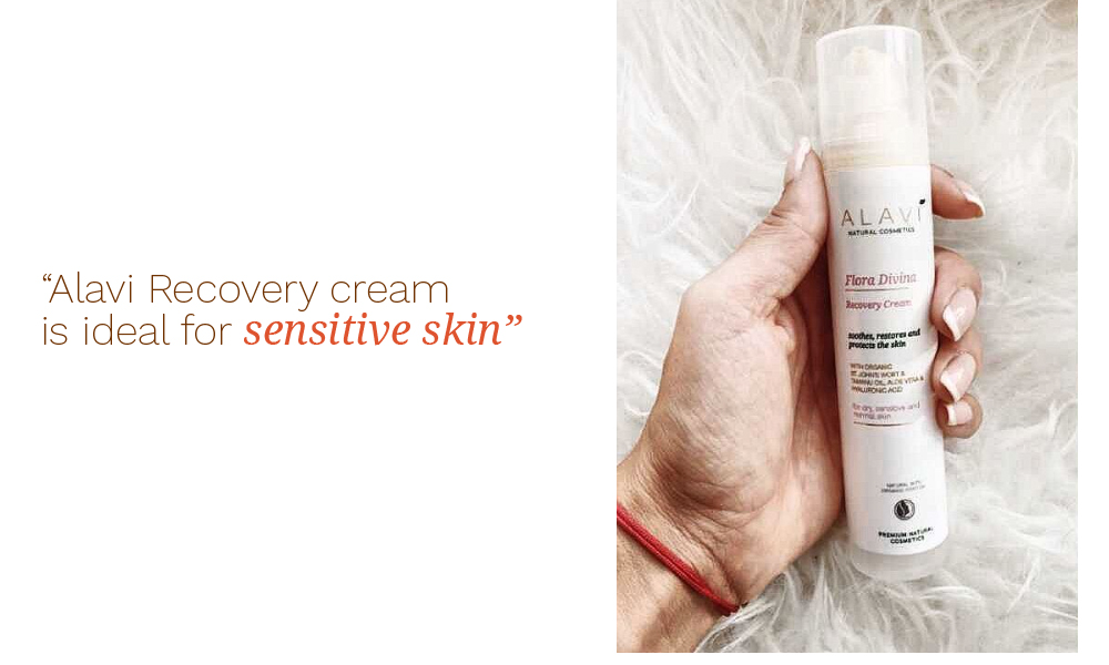 The product designed for sensitive skin, prone to irritation, redness and dryness, that perfectly soothes irritated skin is Alavi Recovery Cream. Luxury organic ingredients such as Tamanu oil, Aloe Vera gel, St. Johns Worth oil and hyaluronic acid, with its rich nutrients, nourish the skin, soothe and protect the skin from external factors.