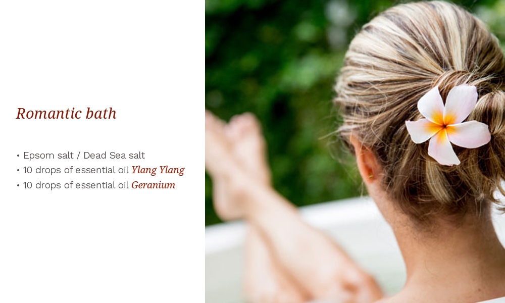 Mix the Dea Flores essential oils with 2 cups of salt. Put salt in a bathtub filled occasion and wait until the salt is dissolved to make theft. Enjoy the beautiful bath on Valentine's Day. <3